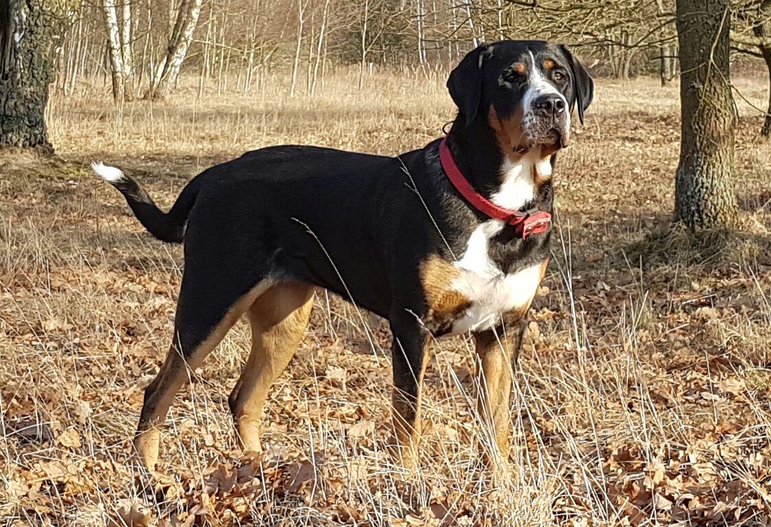 Hedi ist Zuchthündin im Schweizer Sennenhund-Verein für Deutschland e.V. Sie ist HD-Frei (A1), ED-normal, OCD-frei und auch frei von Katarakt. Sie ist eine kräftige, knochenstarke Hündin, 68 cm groß, 54 kg schwer und sie ist trotzdem sehr sportlich und athletisch. Hedi ist eine ausgebildete Zughündin und lebt, genau wie unsere anderen beiden Fellnasen, mit uns im Haus.