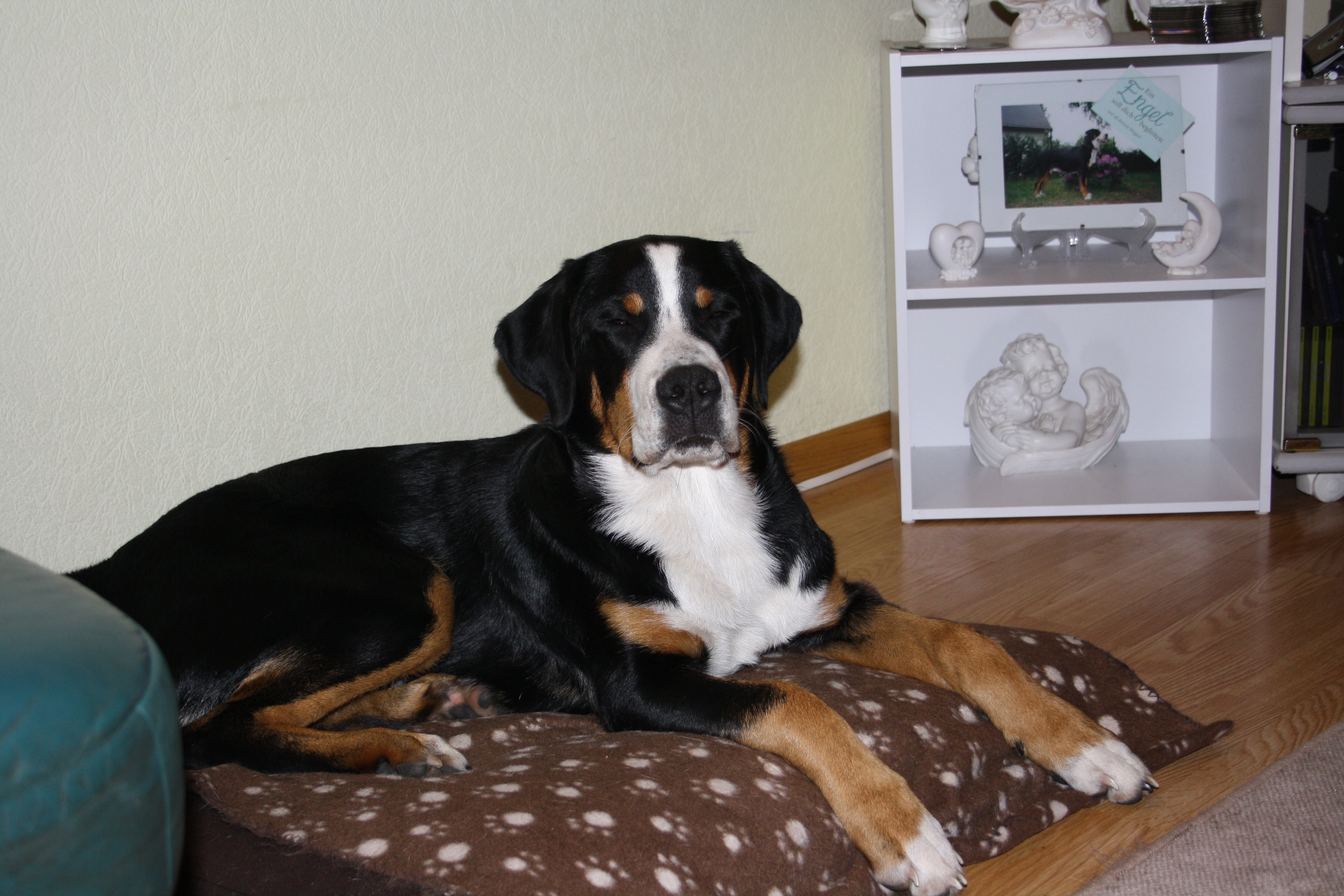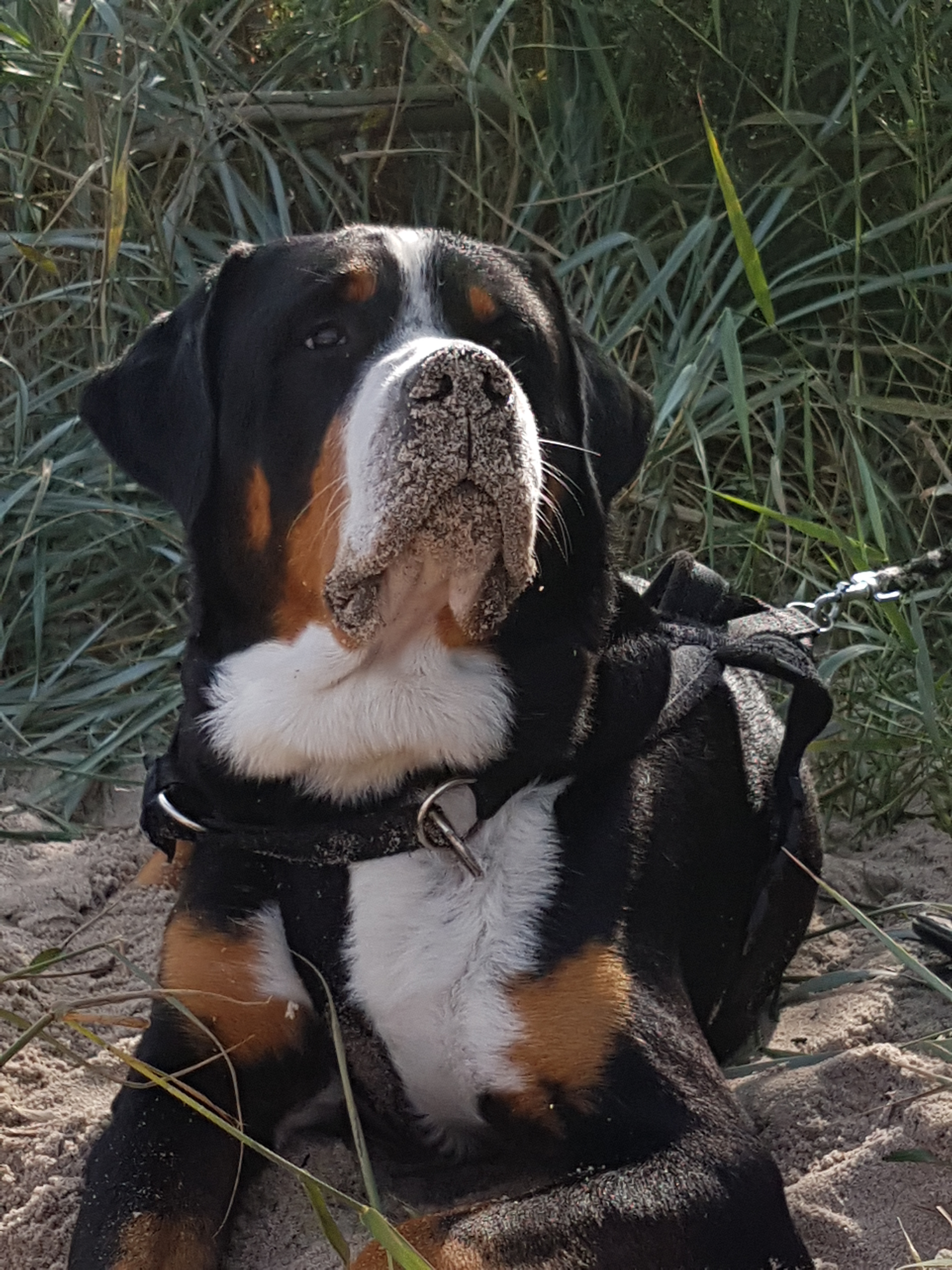 Captain Jack ist der Urenkel unseres alten Rüden Paul (Ben vom Bergmannshaus). Jack ist ein unglaublich lieber Rüde. Verträglich mit allem: Menschen groß oder klein, große Hunde, kleine Hunde, Rüden, Hündinnen. Findet er ein (noch) flugunfähiges Vögelchen im Garten, zeigt er es an und ist ganz aufgeregt, aber er käme wohl nie auf den Gedanken, hineinzubeißen. Er ist ein so gutmütiger Schatz. Wird er von anderen Rüden angegriffen, wehrt er sie zwar kurz ab, aber ansonsten beschwichtigt er nur und geht an den nächsten Baum zum Markieren. Und dann bin ich ja auch schon dazwischen! Manchmal ist Jack etwas laut, aber nur, wenn er aufgeregt ist. Wenn er meint, dass er sich aufregen muss, dann hält ihn nichts davon ab!!! Zu Hause bellt er aber kaum und wenn doch, dann nur ganz kurz. Das überlässt er lieber seinen Mädels, die viel wachsamer sind als er. Er ist zwar auch wachsam, aber er schaut halt nur… Mein absolutes Oberschätzchen.