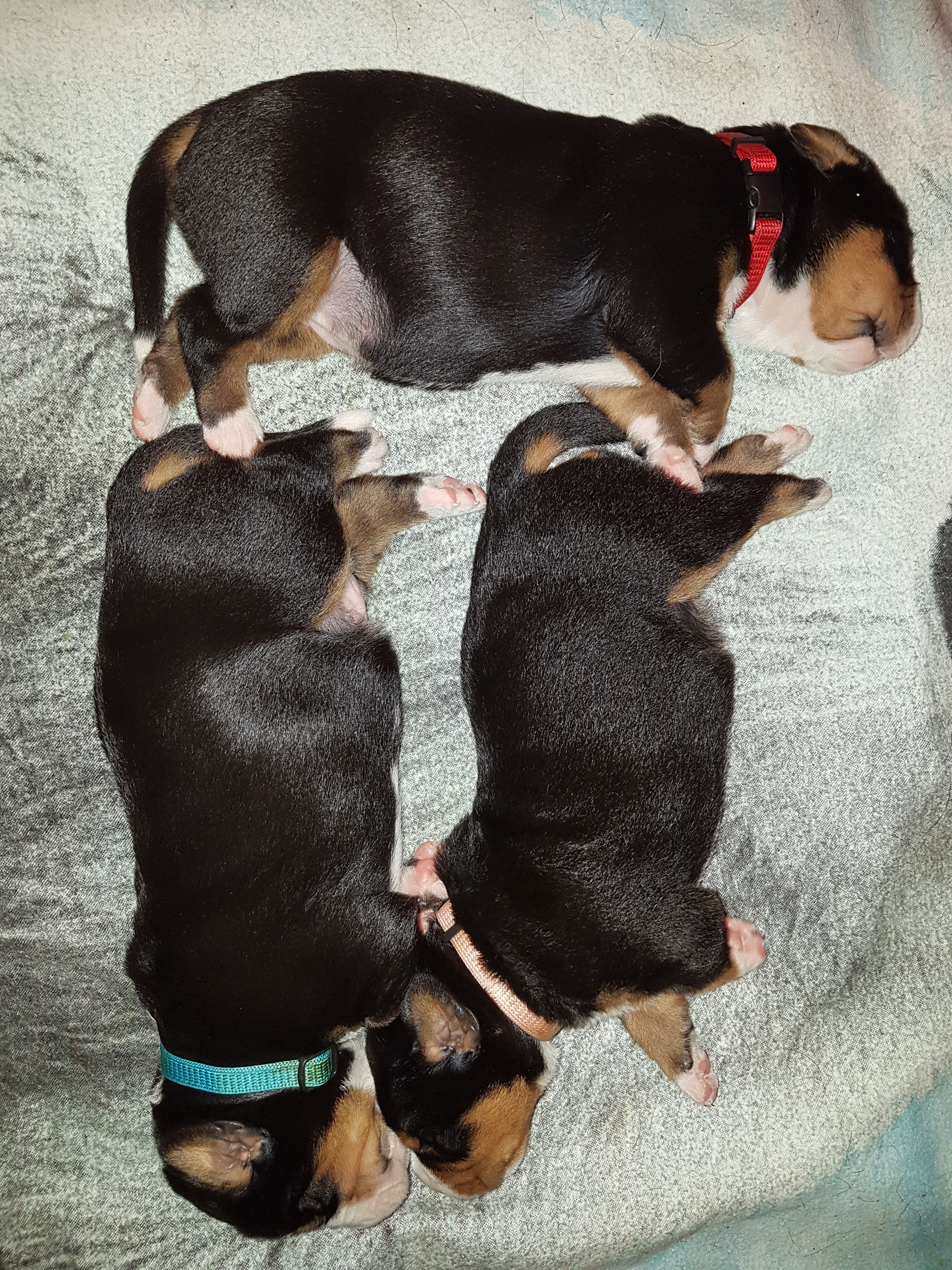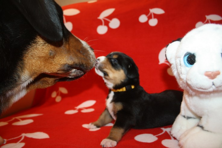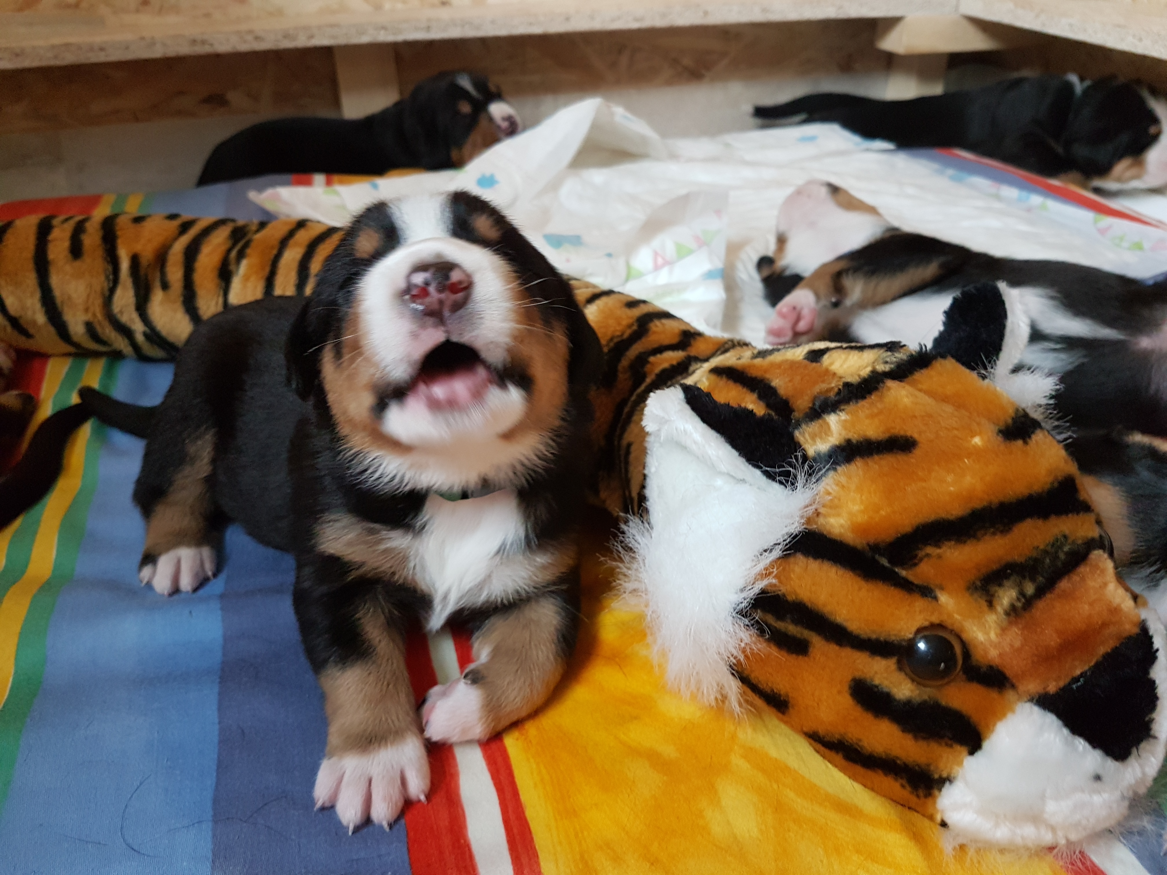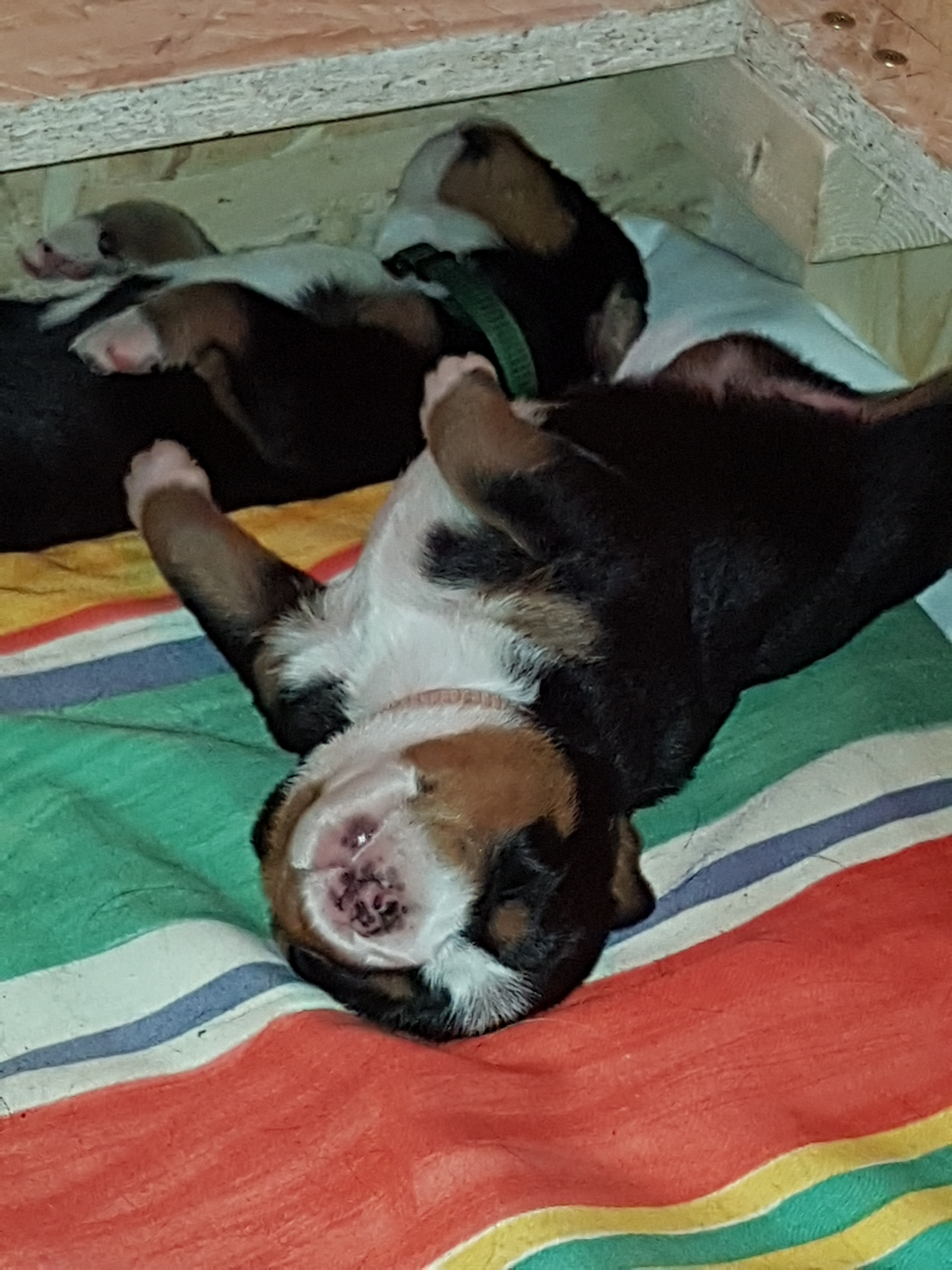 Unser A-Wurf wurde am 1. August 2017 – ausgerechnet am Schweizer Nationalfeiertag – geboren. Wie passend!!! Es war mit Sicherheit der heißeste Tag des Jahres!!! Wir haben gemeinsam mit Hedi so sehr geschwitzt! Aber daran war ja nicht nur die Hitze allein Schuld. Das Ergebnis waren 7 kleine Zwerge – die Jungs: Al-Django, Ayk Age und Artax (genannt Artoc) und die Mädchen Amy, Ana-Jzula, Arabella und Annisha. Hier folgen noch einige Fotos aus der Wurfkiste…